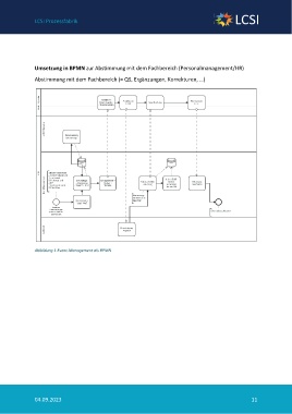 LCSI Prozessfabrik Umsetzung in BPMN zur Abstimmung mit dem Fachbereich (Personalmanagement/HR) Abstimmung mit dem Fachbereich (= QS, Ergänzungen, Korrekturen, …) Abbildung 1 Event-Management als BPMN 04.09.2023 11