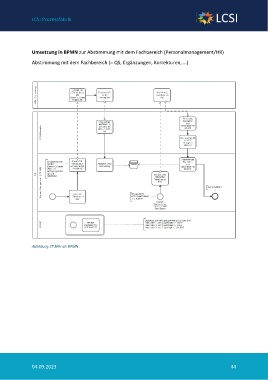LCSI Prozessfabrik Umsetzung in BPMN zur Abstimmung mit dem Fachbereich (Personalmanagement/HR) Abstimmung mit dem Fachbereich (= QS, Ergänzungen, Korrekturen, …) Abbildung 27 BAV als BPMN 04.09.2023 44