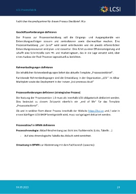 Die inhaltlichen Rahmenbedingungen liefert das aktuelle Template „Prozesssteckbrief“.